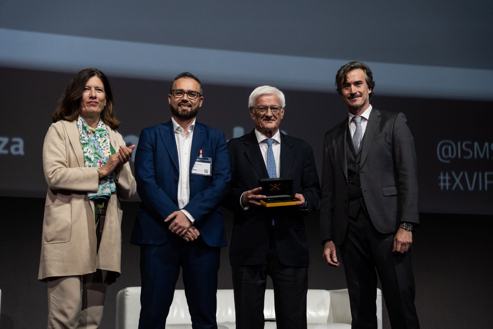 Mar España (AEPD), Daniel García (ISMS Forum), Jesús Rubí (AEPD) y Carlos A. Saiz (ISMS Forum) durante el homenaje a Jesús Rubí.