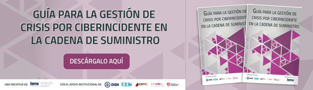 ISMS Forum -International Information Security Community- lanza la Guía para la Gestión de Crisis por Ciberincidente en la cadena de suministro, con el apoyo institucional de entidades como el Departamento de Seguridad Nacional (DSN), el Centro Criptológico Nacional (CCN), el Centro Nacional de Protección de Infraestructuras y Ciberseguridad (CNPIC), el Instituto Nacional de Ciberseguridad (INCIBE) y la Agència de Ciberseguretat de Catalunya en el marco de la celebración de la primera edición de su Foro Digital, bajo el título “Cyber Security & Data Protection Online Forum”.
