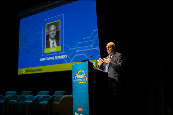 Luis Buezo (presidente del Capítulo Español de Cloud Security Alliance y Miembro de la Junta Directiva de ISMS Forum Spain) durante la sesión de bienvenida.