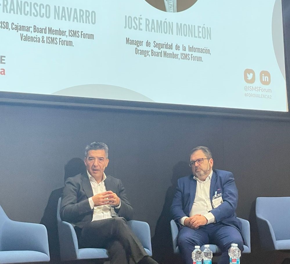 El evento comenzó con una entrevista a Francisco Navarro, CISO, Cajamar; Board Member, ISMS Forum Valencia & ISMS Forum y Jose Ramón Monleón, Manager de Seguridad de la Información, Orange; Board Member, ISMS Forum, en la que Francisco Navarro destacó que “Si realmente no tenemos procesos automatizados para poder responder a los incidentes, estamos muertos. Automatizar la respuesta de incidentes es algo clave a la hora de transformar la tecnología. Se está trabajando mucho en procesos de automatización dado que es fundamental no permitir que ningún proceso establecido para la respuesta no esté definido y lo más automatizado posible, porque si no llegaremos tarde siempre.” “Hay que hacer una adaptación de los riesgos a la empresa, al negocio y a la cultura de la empresa” afirma José Ramón Monleón.