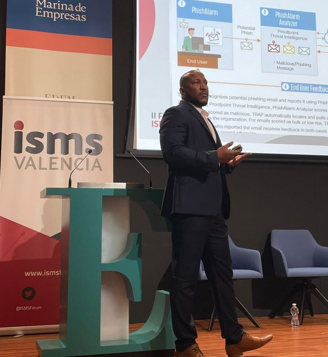 A continuación, nos deleitó Antonio Grimaltos, del Área de Ciberseguridad de la Oficina de Seguridad de la Información, Consejería Sanidad Generalitat Valenciana y Board Member, ISMS Forum Valencia con una serie de consejos para evitar ataques de fishing en los cuales se hacen con nuestro dinero, datos o generan algún tipo de daño, bajo el título “Todos los caminos llevan a roba y cómo evitarlo”.