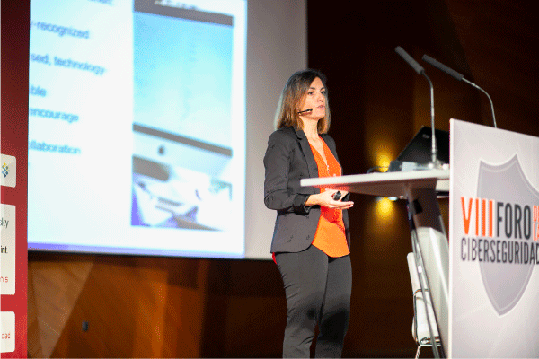 Isabelle Roccia (BSA The Software Alliance), durante su ponencia en el VIII Foro de la Ciberseguridad.