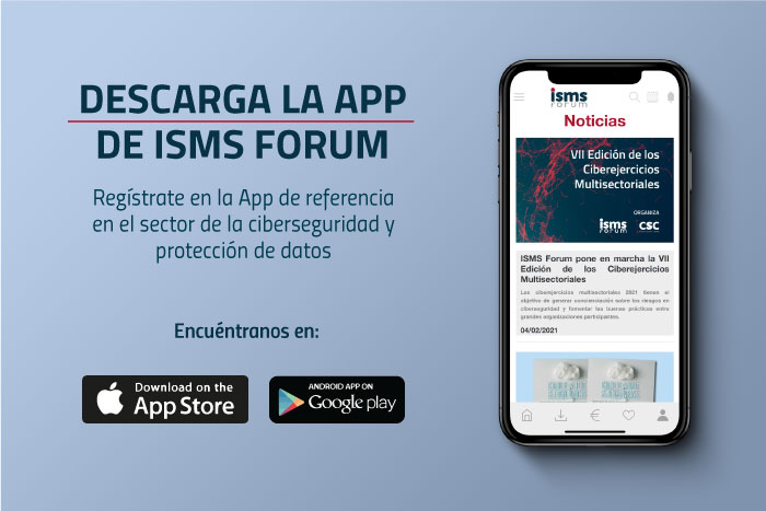 ISMS Forum -International Information Security Community- lanza su propia App pensada para que tengas las novedades del sector de la ciberseguridad y protección de datos en un mismo sitio: últimas noticias, estudios, documentos y actividades relacionadas con las temáticas de ciberseguridad, privacidad, movilidad e IoT, Cloud y Continuidad de negocio, entre otras. ¡Búscanos en las plataformas App Store o Google Play!