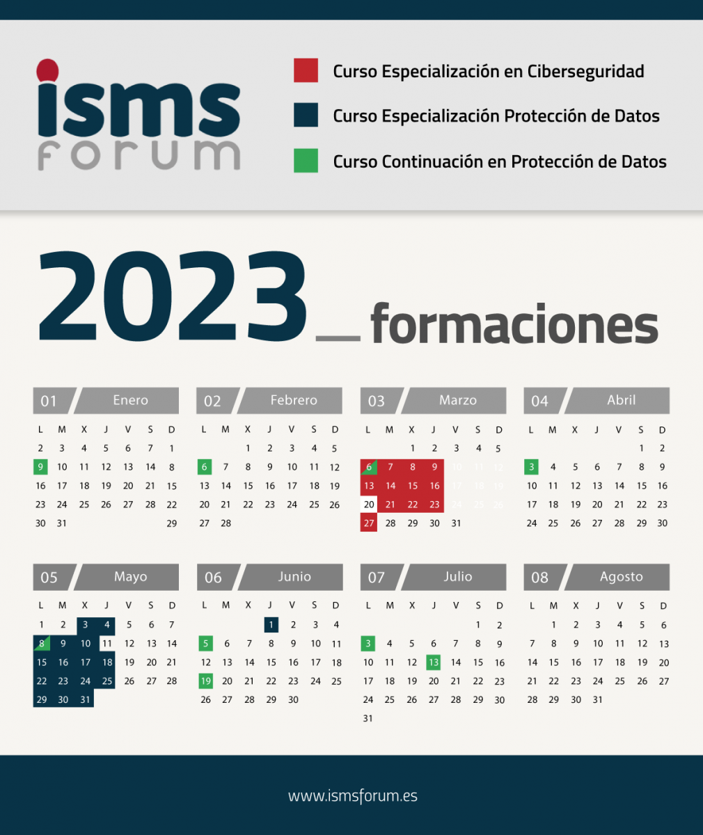 Te presentamos el calendario de formaciones 2023 de ISMS Forum. Apunta las fechas de los Cursos de Especialización en Ciberseguridad, en Protección de Datos y de Continuación.